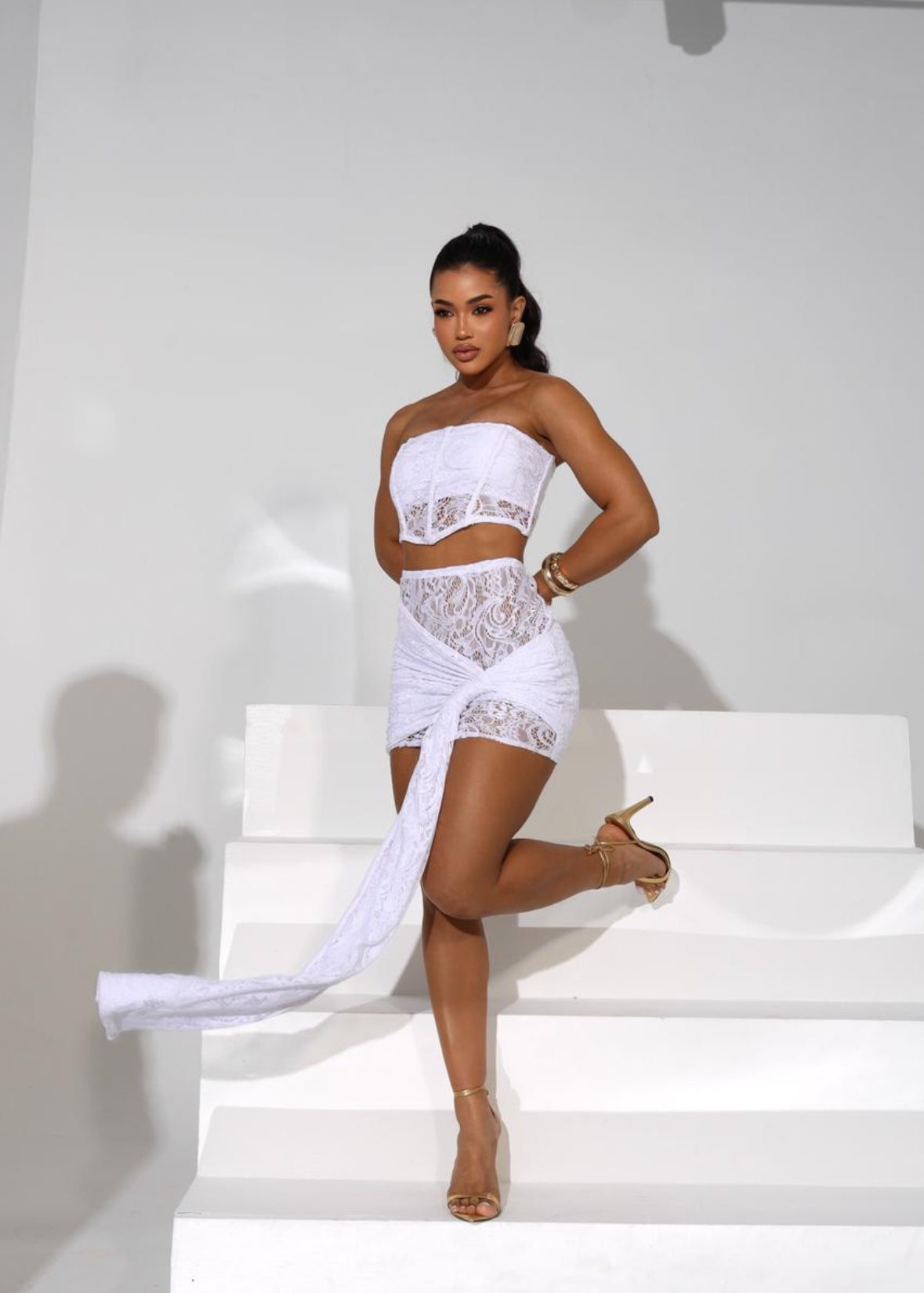 Ensemble confectionné en dentelle avec doublure en polyamide, modèle court.