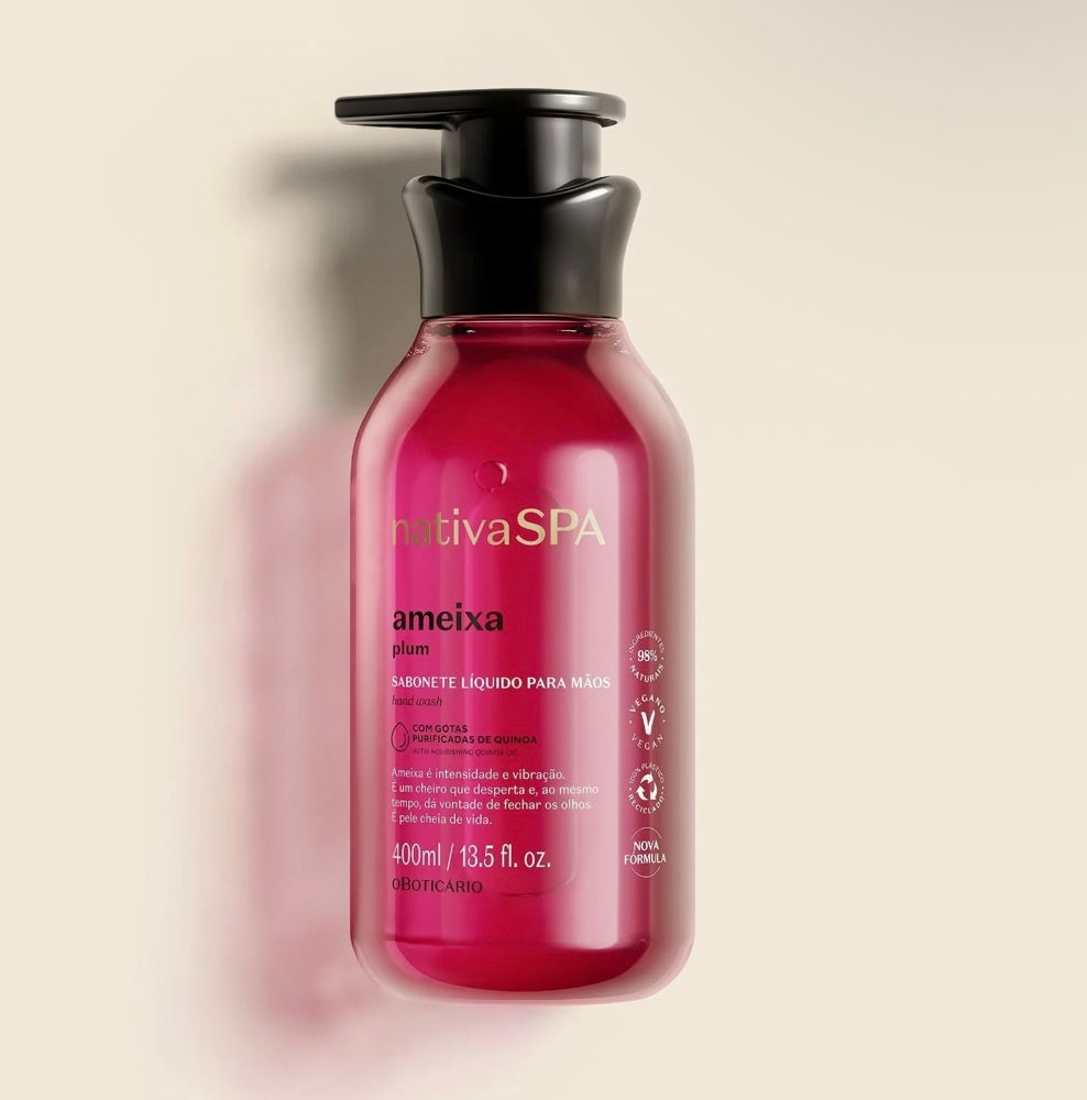 Le savon liquide pour les mains à la prune Nativa SPA laisse la peau douce et parfumée,transformant le moment quotidien du lavage des mains en un événement.